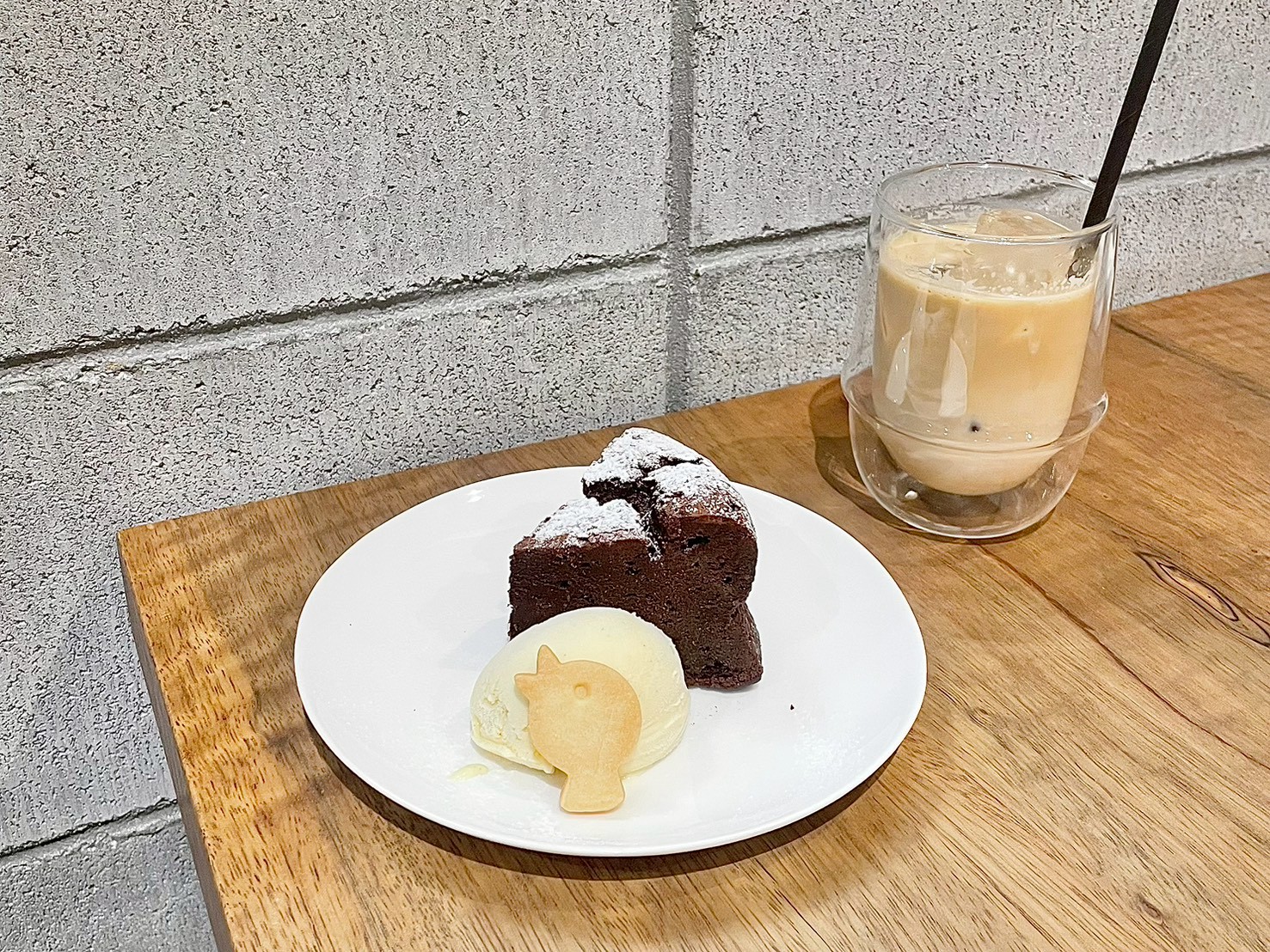 写真は、「ガトーショコラ(自家製アイスクリーム添え)」。
